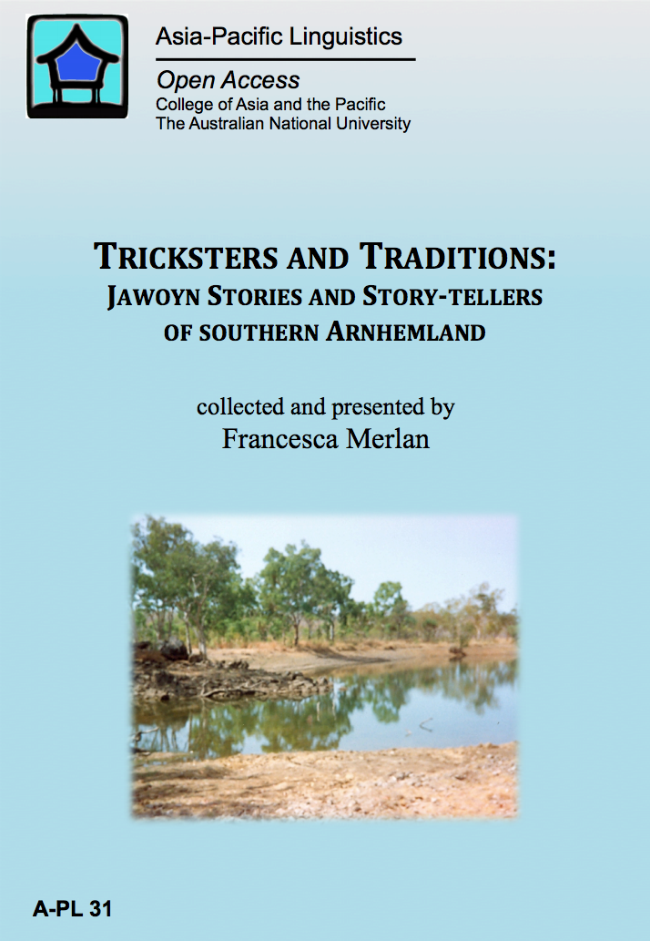 Merlan (2016) Tricksters and Traditions: Jawoyn Stories and Story-tellers of southern Arnhemland, ISBN 9781922185334, A-PL series 31 – available via the ANU Open Access Repository website